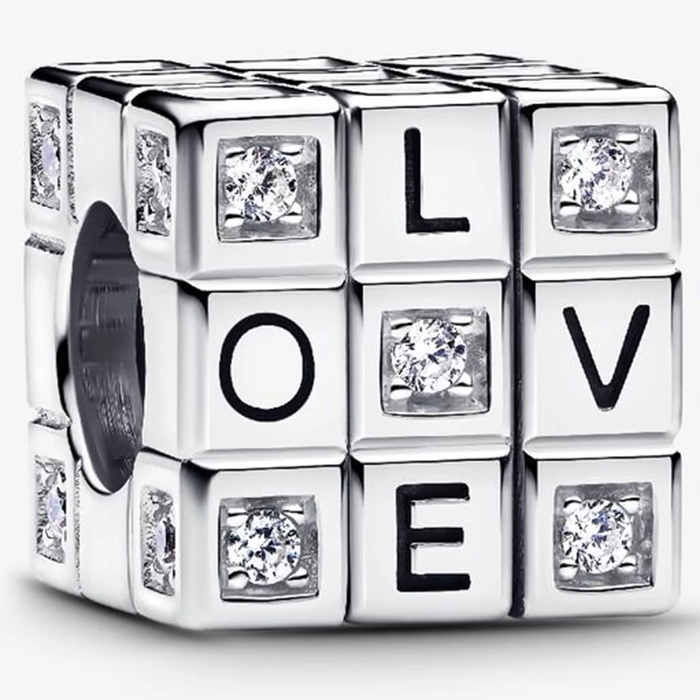 Játszd a szerelem játékát. A sterling ezüstből készült, piros tűzzománc szívekkel, szikrázó kövekkel és gravírozott betűkkel díszített kockák elforgatásával különböző kombinációkat és mintákat hozhatsz létre.