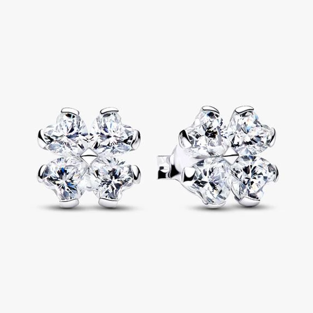 Légy egyedi. Sterling ezüst gombfülbevalónk négylevelű lóherét formáló, szív alakú kövekkel ragyog. A természet szépségének ünneplése, a szeretet és a jó szerencse szimbóluma.