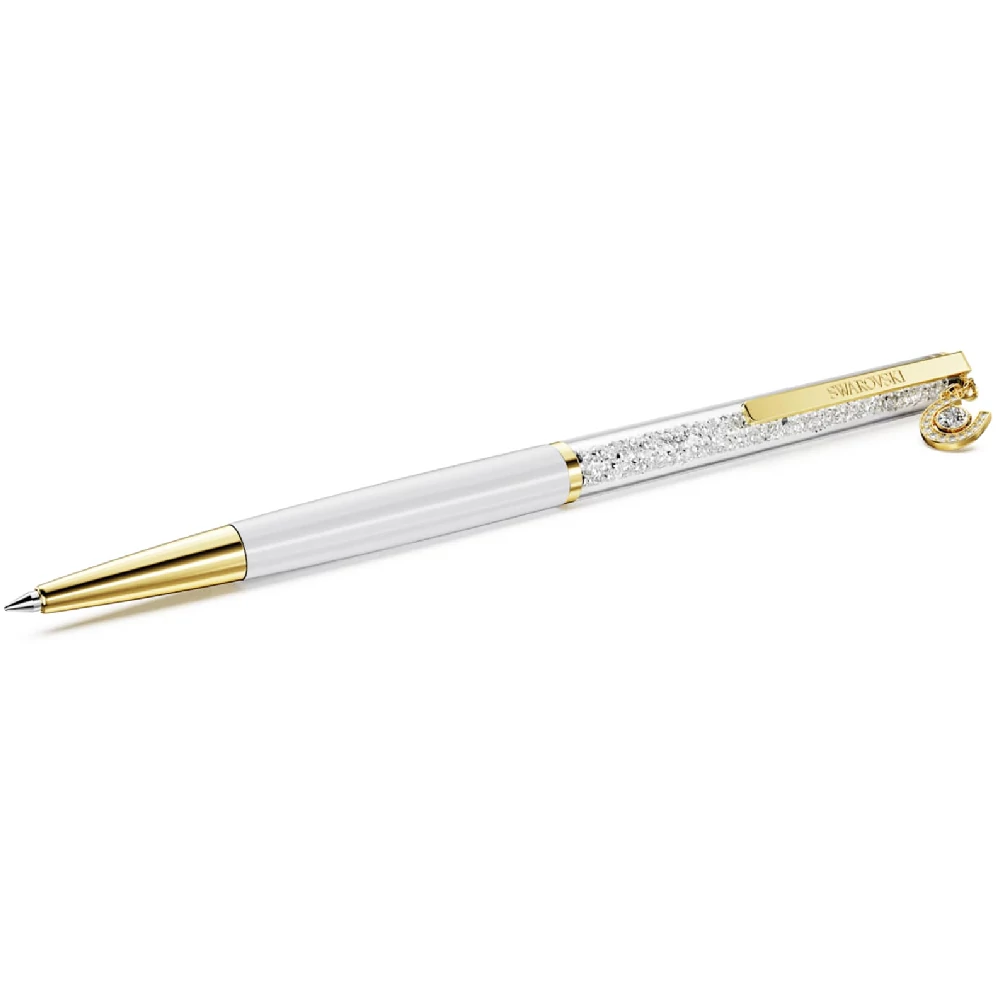 A karcsú golyóstollat körülbelül 400 átlátszó kristály díszíti, amelyek a hosszú, átlátszó ablakon keresztül láthatók. A lakkozott fehér tollszár mellett a tollat aranytónusú bevonat és egy patkó alakú medál díszíti, amelyet számos kultúra tart régóta a védelem és a jólét szimbólumának. Időtlen jelentése miatt ez a toll figyelmes ajándék lehet számos alkalomra, akár sikert kívánunk valakinek, akár egy új kezdetet ünnepelünk, vagy egyszerűen csak a pozitivitás és a törődés jelképét szeretnénk megosztani. Fekete és kék színű tollbetétek vásárolhatók a Swarovski üzleteiben.